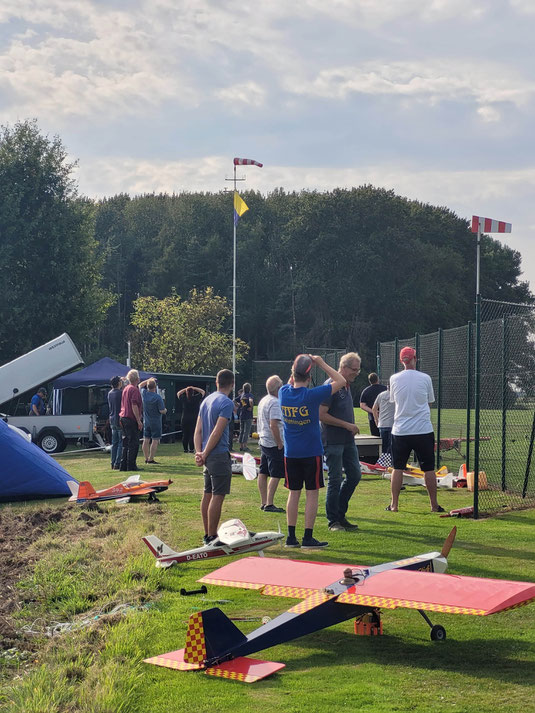 Das sind aber nicht Modelle, die im Regal stehen und schön anzusehen sind. Das Beste - wie wir Vereinsmitglieder finden - ist das Fliegen mit den Modellen. Dazu steht mit dem Vereinsgelände